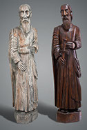 Figury św. Piotra i Pawła z 1863 roku należące do Sanktuarium pw. Narodzenia NMP w Inwałdzie woj. małopolskie. Obiekty sygnowane inicjałami J.P. wykonane z drewna lipowego. Rzeźby eksponowane były na zewnątrz w niszach fasady bocznej kościoła, w związku z tym zostały narażone na czynniki atmosferyczne. Spowodowało to liczne uszkodzenia takie jak butwienie drewna, spękania, ubytki fragmentów drewna, uszkodzenia przez żerujące owady. Podczas prac konserwatorskich w latach 60 XX wieku figury zostały pokryte wodnym roztworem cementu. Upływ czasu i czynniki atmosferyczne spowodowały miejscowe odwarstwianie się powłoki w związku z tym powstały liczne spękania i ubytki. Jedną z podstawowych czynności prac renowacyjnych było usunięcie warstwy cementu która zakrywała strukturę drewna. Wiele brakujących i zniszczonych elementów musieliśmy odtwarzać np. miecz św. Pawła który został całkowicie zniszczony, brakujące palce, fragmenty szat, oraz inne. Przeprowadzona dezynsekcja pozwoliła na całkowite wytrucie żerujących owadów niszczących tkankę drewna. Impregnacja i plombowanie figur przyczyniło się do znacznego wzmocnienia zniszczonego drewna w szczególności podstaw cokołowych. Podczas prowadzonych przez nas prac zostało wykonanych wiele czynności konserwatorskich, które doprowadziły obiekty do do stanu obecnego. Całościowo figury zostały pokryte specjalistycznym środkiem odpornym na czynniki zewnętrzne, który również spełnia rolę dekoracyjną.